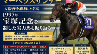 マーベラスサンデーの血統概要、1996年の重賞4勝、1997年の産経大阪杯と宝塚記念の勝利、当時の古馬戦線や名勝負の背景まで振り返ります。大阪杯を勝利した名馬として改めて魅力を紹介します。